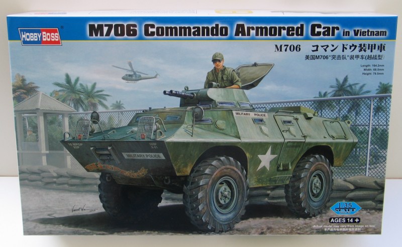 Bausatz: Viele Jahre ist es her als die Firma Verlinden den V-100 als Resinmodell auf den Markt brachte. Obwohl das Fahrzeug sich auch bei Modellbauern großer Beliebtheit erfreut ist Resin nicht jedermanns Sache. Jetzt hat die Firma HOBBY BOSS das Flehen erhört und bringt den V-100 in mehreren Varianten auf den Markt. Angefangen mit den M 706 der oft von der Militärpolizei der US Streitkräfte in Vietnam eingesetzt wurde. Nach Öffnen des Kartons fallen einem 6 Gußäste, eine Ober und Unterwanne ins Auge. Alle Teile des Bausatzes sind bis auf kleine Ausnahmen gratfrei und gut detailliert. Auswerfermakierungen kommen nur auf der Rückseite der Teile vor. Das Modell besitzt eine Inneneinrichtung. Ob diese vollständig ist, kann ich leider nicht sagen, weil mir Hintergrundmaterial fehlt. Meiner Meinung nach fehlt das Armaturenbrett. Aber der Zubehörmarkt wird bestimmt bald einiges nachlegen, um das Modell noch aufzuwerten.