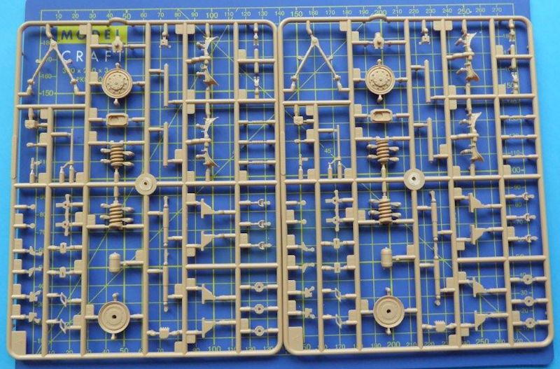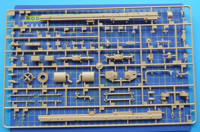 War die Ladefläche bei Revell komplett leer, wartet Hobby Boss mit Sitzreihen für den Personentransport auf. Auch an die Gewehrhalterungen auf der Ladefläche hat man gedacht. Das Rahmengestell für die Plane ist gut wiedergeben. Die Plane fehlt leider im Bausatz. Auch sucht man das auf dem Deckelbild abgebildete MG auf der Drehringlafette vergeblich. Schade. Der Innenraum der Fahrerkabine ist komplett bis auf die Sicherheitsgurte. Diese fehlen leider immer auf den Ätzteilplatinen. Ansonsten ist der Bausatz des 5 to. sehr gut umgesetzt worden. Das fängt schon beim Fahrzeugrahmen an der aus einer Vielzahl von Bauteilen besteht