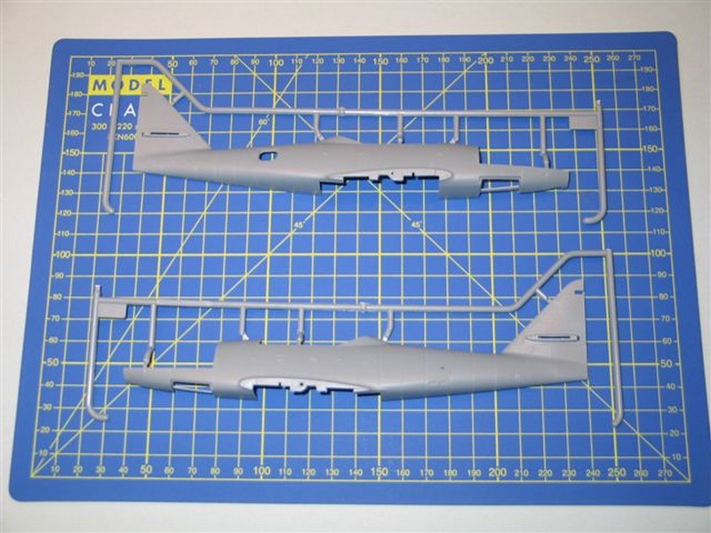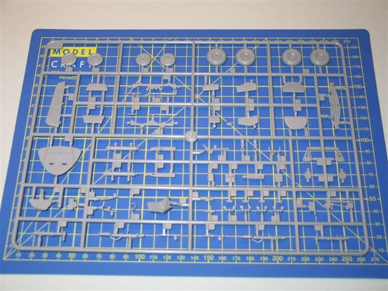 Das Gewicht müsste ausreichen, um dem Modell das auf allen 3 Fahrwrksbeinen zu halten. Alle Bauteile sind sehr schön detailliert. Die Gravuren sind fein versenkt wiedergegeben. Die Kanzel kommt schlierenfrei daher. Die Antenne des FuG 218 ist schön wiedergegeben. Auch in Spritzguss ist der Profilumfang der Antenne gut gelungen. Beim Heraustrennen ist aber größte Vorsicht geboten(!), da es sonst Bruch gibt. Als Bewaffnung liegt dem Bausatz 6 Maschinenkanonen 108 bei. Sonst sind alle Teile mit den Bausätzen der Hobby Boss Me 262 Serie im Maßstab 1:48 identisch.
