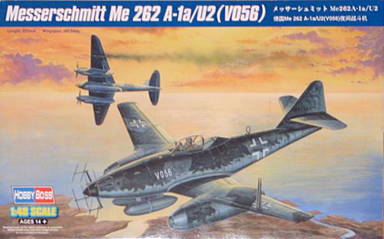 Zur Geschichte: Die Me 262 A-1a/U5 war der Versuch, aus der einsitzigen Me 262 Schwalbe einen Nachtjäger zu erschaffen. Von der Me 262 A-1a/U2 gab es nur einen Prototyp, nämlich die V056. Diese Maschine stand seit Sommer 1944 in der Flugerprobung. Zum späteren Zeitpunkt wurde die Maschine mit der „Hirschgeweih“-Antenne des FuG 218 am Rumpfbug ausgestattet. Ein weiteres Merkmal des Nachtjägerprototyps war das mit zwei vertikalen Antennen auf der linken Tragfläche montierte FuG 226 Neuling.