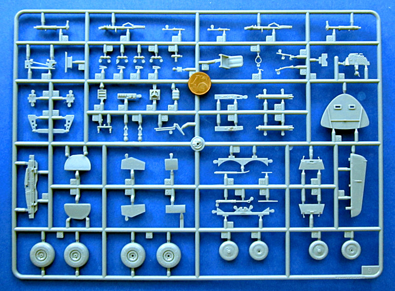 Der Hauptfahrwerksschacht mit Cockpitwanne ist toll detailliert und begeistert durch filigrane Teile und gute Kostruktionsideen … teilweise sogar besser als bei Tamiya. Das Teil des Bugfahrwerksschachtes liegt alternativ als Plastik- und Metallteil bei. Letzteres passt einwandfrei! Auch bei diesem Modell gibt es wieder keine separaten Vorflügel, aber das hat ja noch keiner der Me 262 Modelleure hinbekommen…