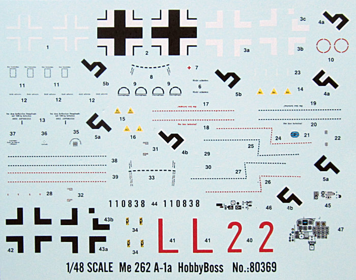 Quellen: Bausatzbericht Utz Schißau Me 262A-1a/U5 und Wiki zur Me 262