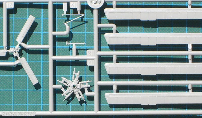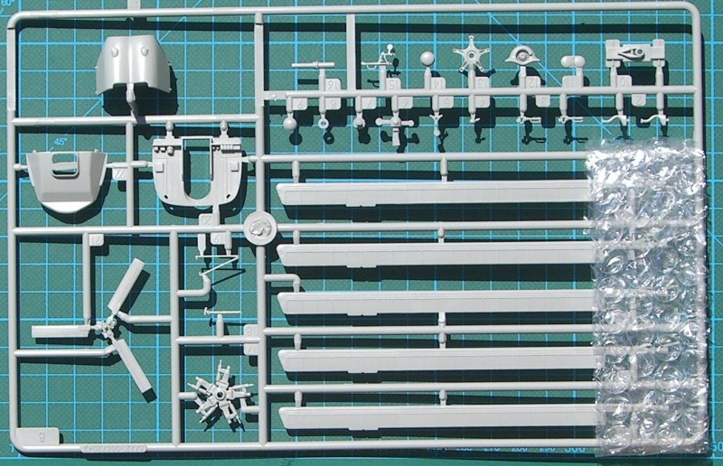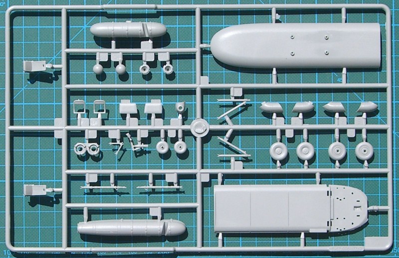 Die drei hellgrauen Spritzgussrahmen enthalten sehr gut detaillierte Bauteile. Das Cockpit kann so aus der Box entstehen. Selbst der Frachtraum besitzt eine ordentliche Detaillierung. Einzig Sitzgurte können noch ergänzt werden. Durch die im Bausatz vorhandenen Öffnungen kann man selbst die kaum erkennen.