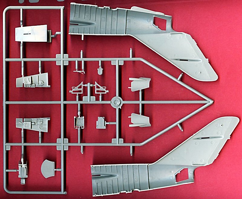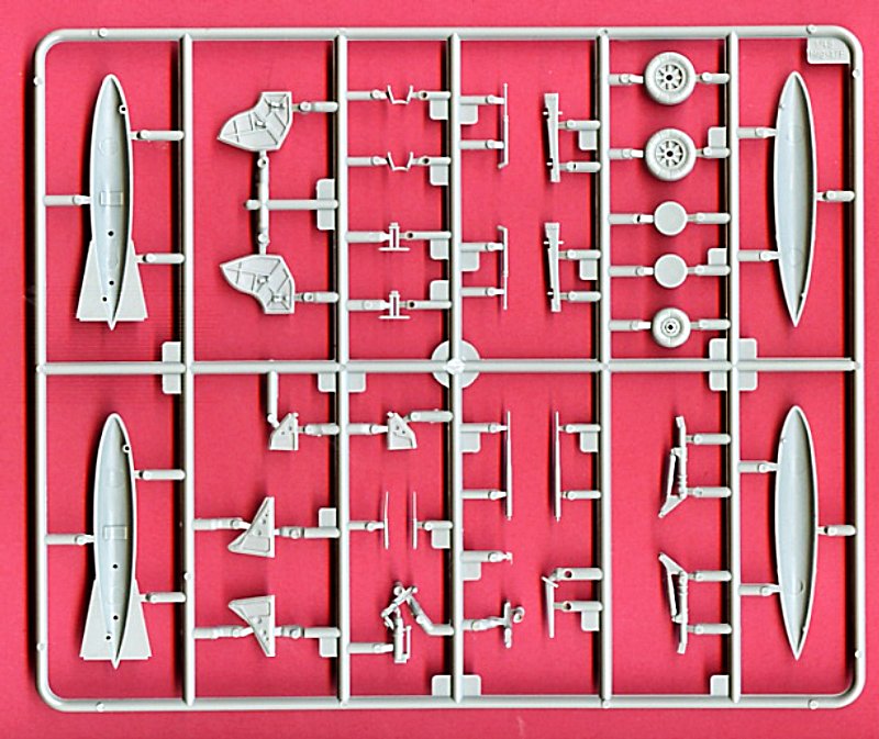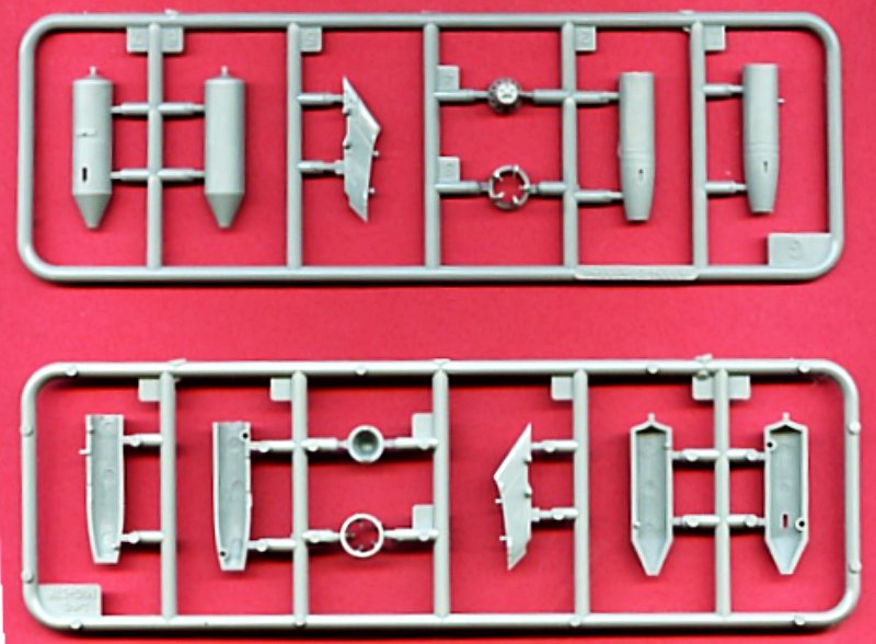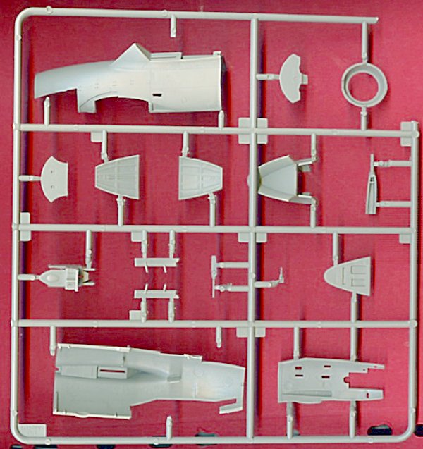 Die weiteren Einzelteile in Cockpit und bei der Bewaffnung stellen eine Option dar. Sie lassen für jeden genügend Spielraum zur weiteren Detaillierung. Die Antennen in der Cockpithaube sind überdimensioniert, das Profil der Reifen ebenfalls. Ein gut gelungenes Wk-1F Triebwerk gehört ja bei fast jedem 48er Bausatz dazu.