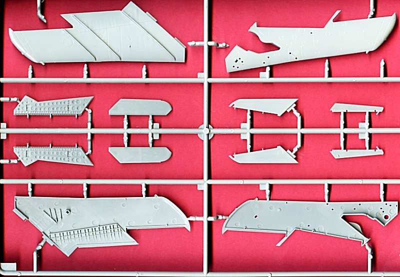 Der Bausatz präsentiert sich im gewohnt guten chinesischen Outfit. In der stabilen Box finden wir sieben separat verpackte graue Gußäste sowie einen mit Klarsichtteilen. Ebenfalls Standard ist die übersichtliche Bauanleitung und der Extrabogen für die Bemalungsvarianten. Als Vergleichsobjekt diente mir der Smerbausatz und die Zeichnung aus awiakollekzija 2/07.