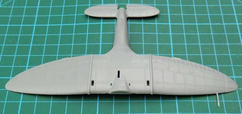 Infolge der gut gelösten Konstruktion besitzt das Modell messerscharfe Hinterkanten. Der Motor bildet mit der Haube eine Einheit. Hier werden nur noch die Auspuffrohre ergänzt. Die Positionsleuchten sind nicht vorhanden.