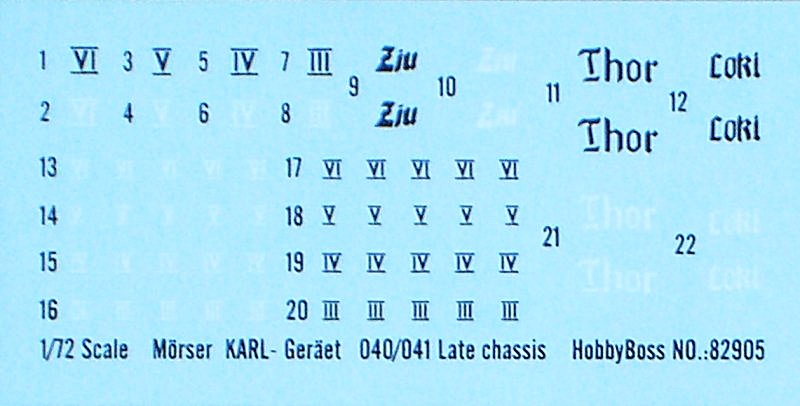 Die Decals für die Mörser "Thor", "Loki" und "Ziu" wurden auf hellblauem Trägerpapier gedruckt. Allerdings geht die Bemalungsvariante nur auf den Mörser "Ziu" ein.