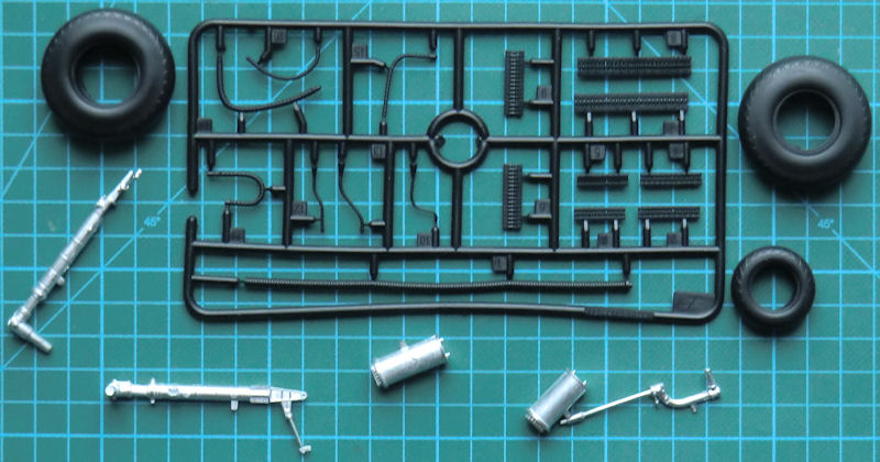 Weiterhin gibt es drei Metallfahrwerksbeine und auch Gummiräder. HobbyBoss liefert auch Gummiteile für die MG-Gurte.