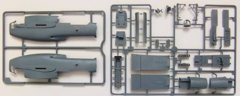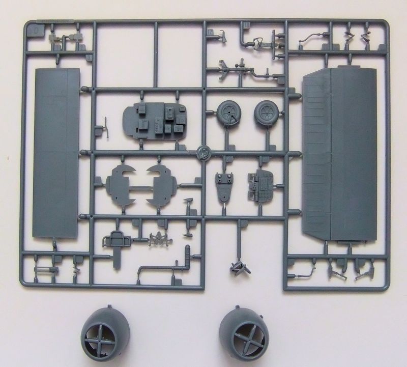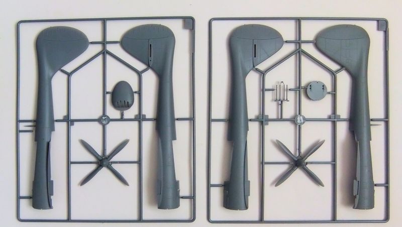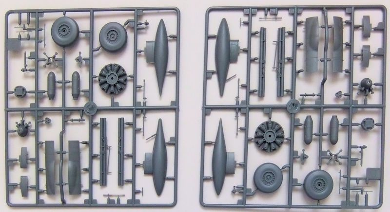 Anders sieht es bei den beiden Pratt&Whitney R-2800 Stern-Motoren aus. Die Darstellung als Relief auf einer Grundplatte ist für heutige Verhältnisse einfach nicht ausreichend. Zumal nicht beachtet wurde, das es Doppelsternmotoren waren. Wer möchte, kann im Bug auch ein Radargerät einbauen. Verstellbare Klappen und Ruder sind nicht vorgesehen. Die beiden Motorhauben sind jeweils aus einem Stück gefertigt.