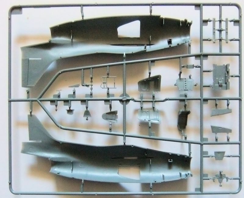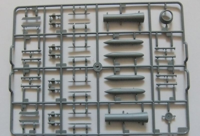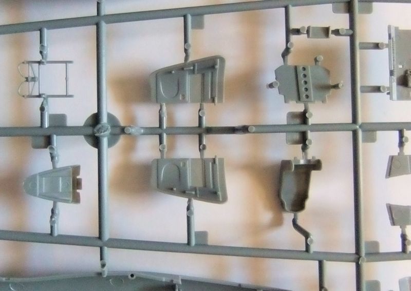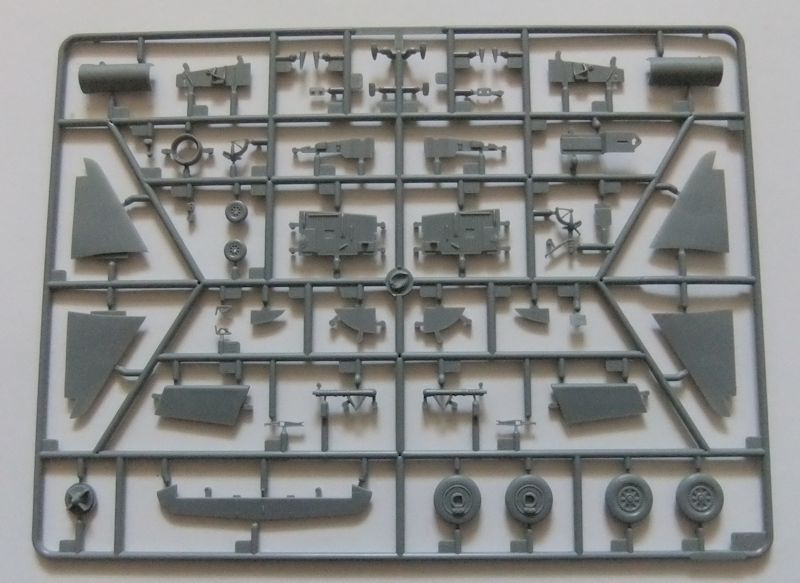 Bausatz: Im Stülpkarton finden wir an 5 Gussästen insgesamt 124 Einzelteile von ausgesprochen guter Machart. Hobbyboss eben. Die Gravuren sind laut Plänen da wo sie hingehören und auch nicht übertrieben dargestellt.