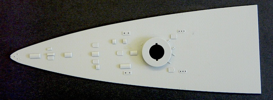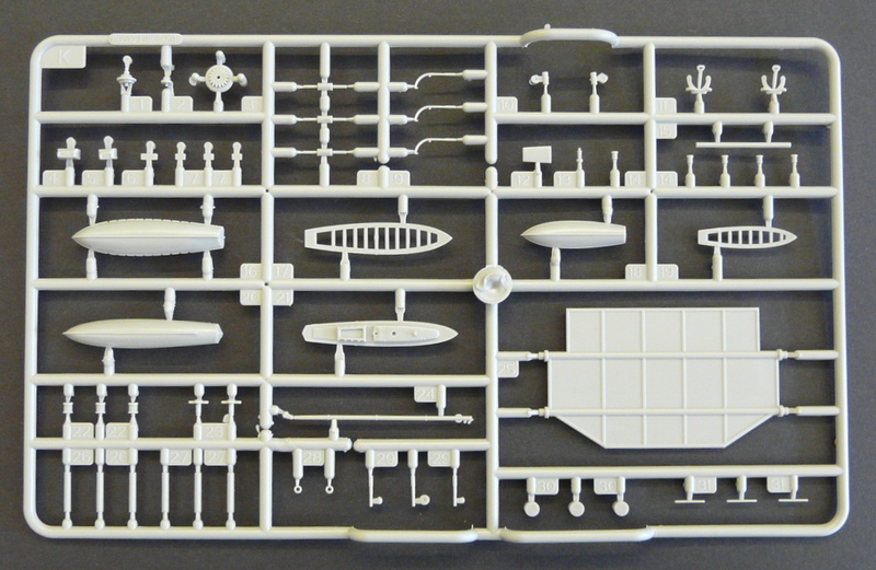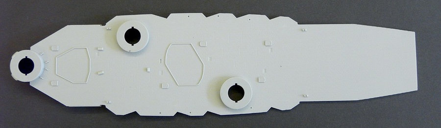 Das Deck ist dreiteilig ausgeführt, wobei das Backdecksteil inklusive des Unterbaus für den vorderen Schornstein ausgeführt ist. Das Mittelteil ist inklusive der achteren Kasemattgeschützbuchten und des Unterbaus der Türme B, E und C ausgeführt. Das Problem hierbei ist, dass die hinteren 8,8 cm Geschütze irgendwann ausgebaut worden waren und die Struktur in diesem Bereich stark zurückgebaut worden war. Der Modellbauer muss nun also entscheiden, ob er den "vor-Skagerrak" Zustand herstellen will, oder ob er lieber den "nach-Skagerrak" Zustand darstellen will. Beides ist mit nicht wenig Arbeit verbunden. Eine weiteres Problem: die Kohleluken sucht man vergebens. Hobby Boss glaubt wohl, dass Seydlitz mit Schiffsdiesel fuhr! Auch die Wellenbrecher auf dem Oberdeck sind nicht vorhanden. Eine Vielzahl von kleinteilig ausgeführten Details in Plastik und Fotoätz komplettiert die Decks. Hobby Boss gönnt uns die annähernd vollständige Beibootsflottille der Vorkriegszeit. Das ist etwas zu viel des Guten, da Seydlitz aber während des Krieges zu verschiedenen Zeitpunkten, unterschiedliche Bootstypen mitgeführt hat, wie Fotos zweifelsfrei belegen, ist das Angebot zumindest nicht zu verachten, bietet es doch die maximale Freiheit bei der Darstellung. So könnte man sogar die Kutter auf den Dächern der Türme B und E darstellen, die dort zeitweise, zum Beispiel während der Skagerrak-Unternehmung, mitgeführt wurden, obwohl Hobby Boss das nicht vorsieht. Unglücklich ist hierbei nur, dass für die geätzten Bootsstützen feine Schlitze im Deck vorgesehen sind und dies natürlich für die maximale Bestückung!
