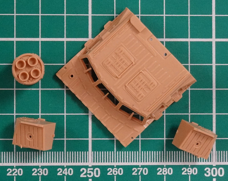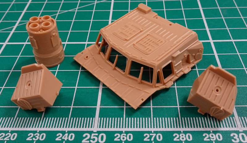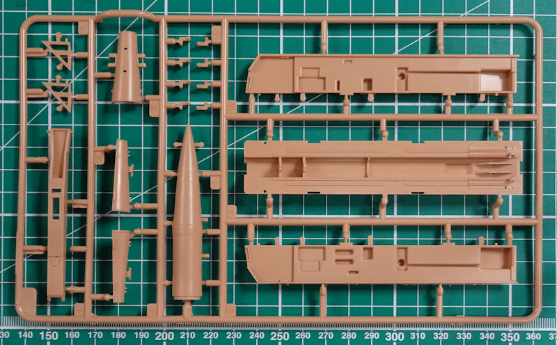 Aus nur zwei Teilen entsteht die Rakete und wenn man möchte, dann kann man diese auch am fertigen Modell ein- oder ausgefahren zeigen. In der Transportstellung ist die Rakete abgedeckt.