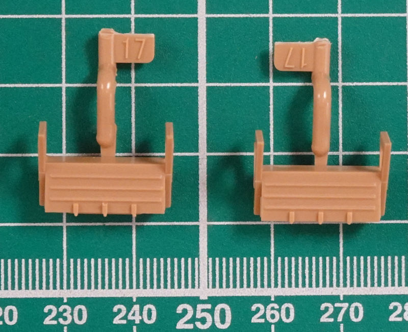 Die Fahrerkabine ist auch innen komplett detailliert. Allerdings bleibt im Vergleich zum 1/35er Modell alles zu. Für die Instrumente gibt es trotzdem Decals. Beim Fahrwerk sind einige Bauteile sinnvoll zusammengefasst aber die Detaillierung ist für diesen Maßstab toll.