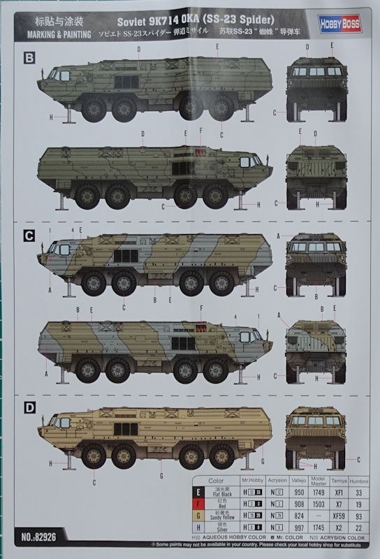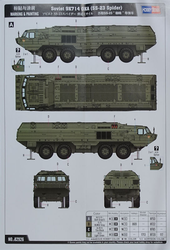 Fazit: Ein gelungener typischer Militärfahrzeugbausatz von HobbyBoss in 1/72. Damit gibt es eine schöne Startrampe der SS-23 SPIDER endlich auch im Sammlermaßstab für den fortgeschrittenen Modellbauer!