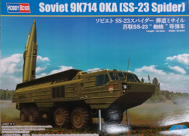 Bausatz: Die SS-23 Spider waren gut 15 Kilometer von meinem jetzigen Wohnort stationiert. Daher fasziniert mich die Technik dieser Waffe nach wie vor. Nun hat HobbyBoss nach der 2014 in 1/35er Spider nun einen zeitgemäßen Bausatz auch in 1/72 herausgebracht.