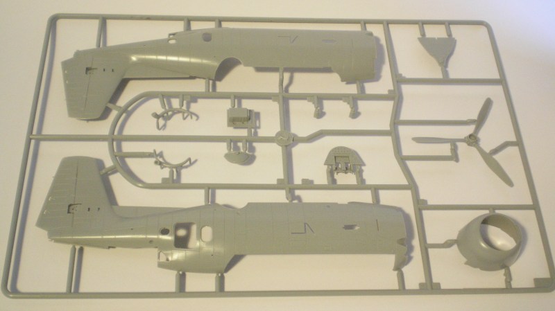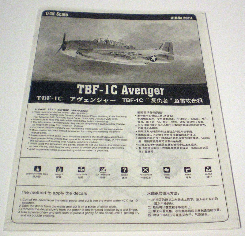 Der große Karton enthält eine große Anzahl von filigran abgespritzten Einzelteilen, welche sich an die Baugruppenaufteilungen des Modells der Fa. Trumpeter in 1:32 orientieren. So sind der umfangreich ausgestattete Besatzungsraum und der interne Waffenschacht nahezu identisch und auch der Umfang des Waffenarsenals : Torpedo, Bomben, interner und externer Zusatztank sowie die hauptsächlich für die U-Boot Jagd verwendeten 12,7 Raketen finden sich in diesem 48er Bausatz wieder. Leider fehlen aber die im Atlantikraum eingesetzten Wasserbomben. Trotzdem lässt sich aber eine spektakuläre Replik der Avanger erstellen,wobei die Nachbildung des Wright R-2600 14 Zylindersternmotores ebenso berücksichtigt wurde wie die Möglichkeit das Modell mit angeklappten Tragflächen zu bauen. Selbstverständlich sind auch die dünnen klaren Kabinenhauben geöffnet vorgesehen.