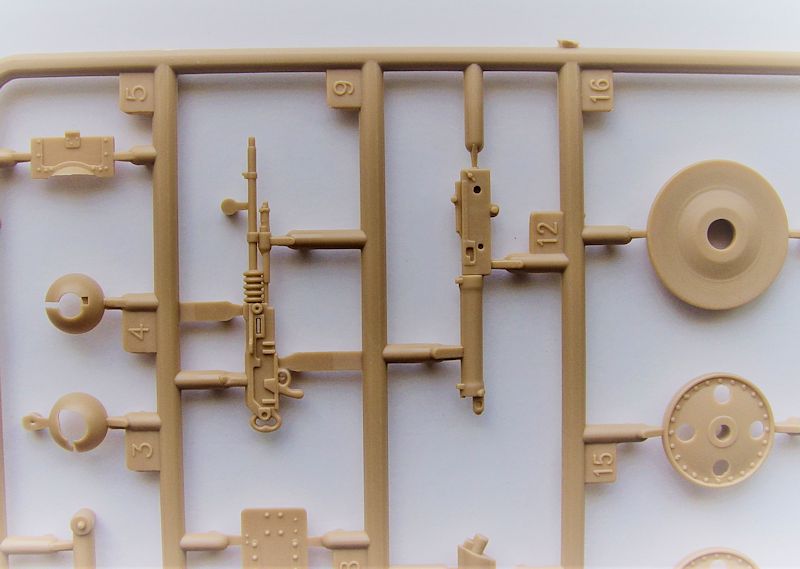 Bausatz: Hobby Boss hat seine Panzerpallette um den Vickers Medium Tank Mk.II ergänzt. Im Karton finden wir sauber verpackt zwei A4 Rahmen, sechs in A5 und weiterhin 3 in A6 aus gelbem, gut zu verarbeitenden, Kunststoff.