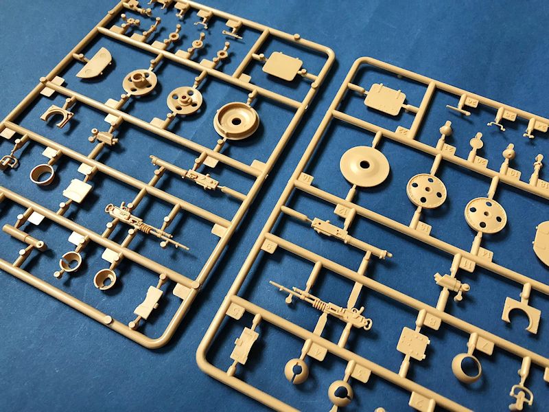Sehr schön detailliert sind auch die Vickers und die Hotchkiss MGs, von denen man nach Einbau leider nicht mehr viel sehen kann. Die Laufrollen und das gesamte Laufwerk sind auch bis zum kleinsten Detail sauber nachempfunden und bereitet in Anbetracht der kleinen Teile sicherlich eine ruhige Hand oder entsprechende Mengen an Kaffee.