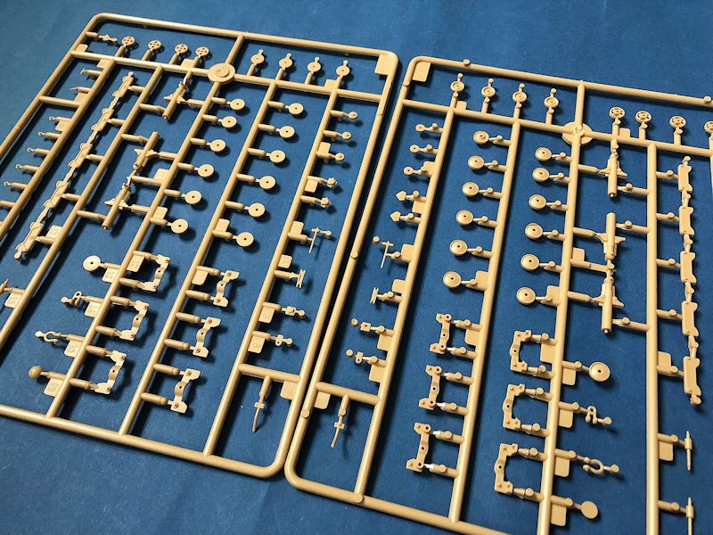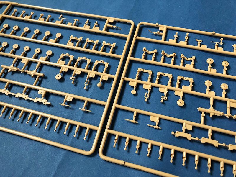 Der Ätzteilebogen enthält sinnvolle Teile, die zur Aufwertung des Modelles eingesetzt werden können. Eine Besonderheit dabei ist die Tatsache, dass der Messingbogen aus ehr dickerem Material gefertigt ist und die Teile damit eine erhöhte Stabilität aufweisen. Ebenso hat man hier beschlossen den Bogen auf beiden Seiten mit einer Klarsichtfolie zu schützen, was mir bei extrem dünnen Bögen eher missfallen hat, da man beim Abziehen der Folie kleinste Teile oft beschädigt. Dies kann hier sicherlich nicht passieren.