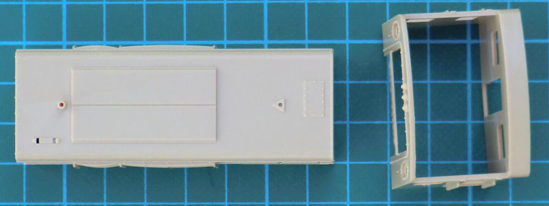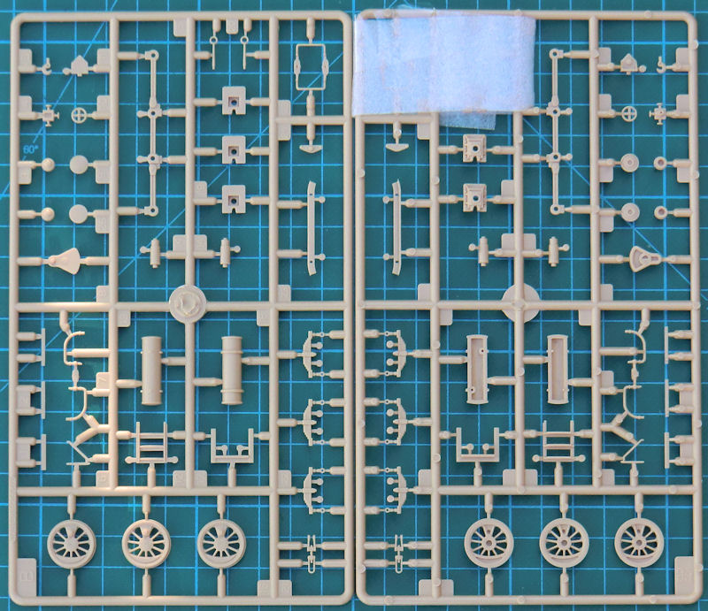 Auch im Lokführerstand geht es ordentlich zur Sache. Für den Maßstab gibt es sehr viele Details. Leider keine Bemalungshinweise dafür. Die Klarsichtteile werden einzeln eingepasst und die hintere Tür ist einzeln einzukleben.