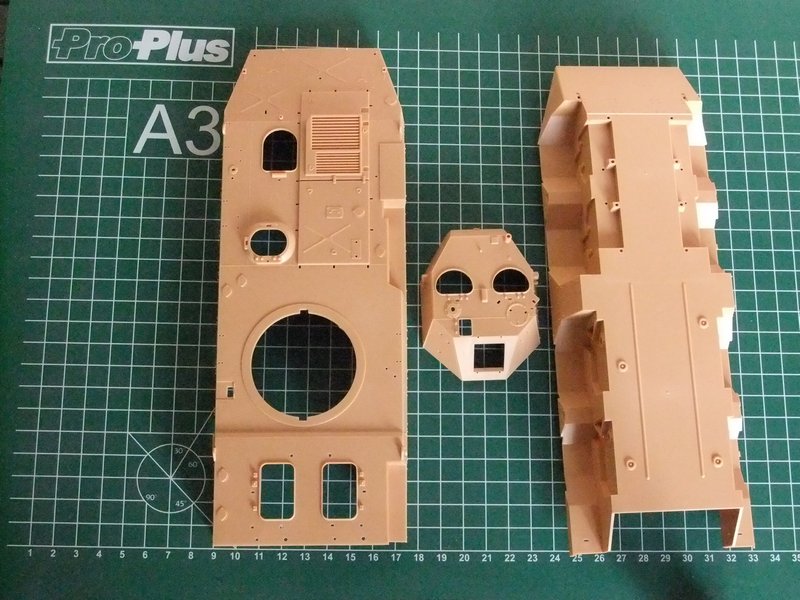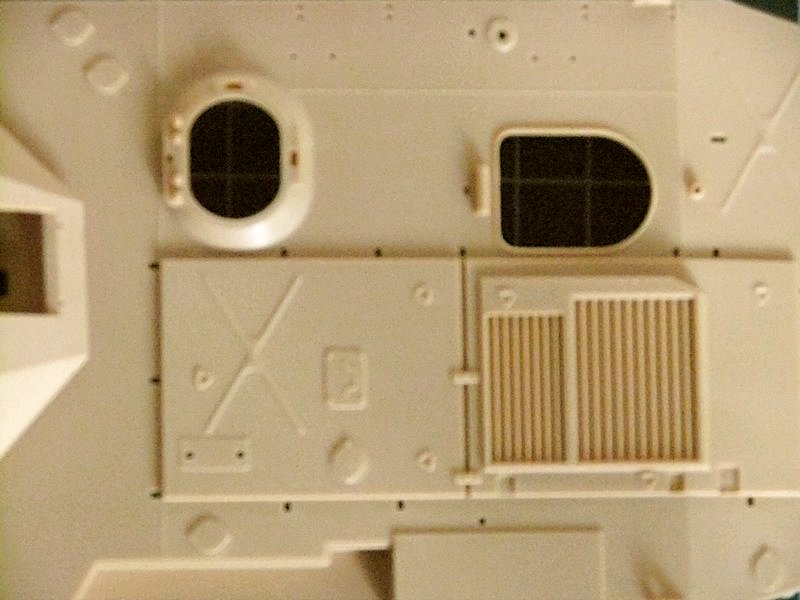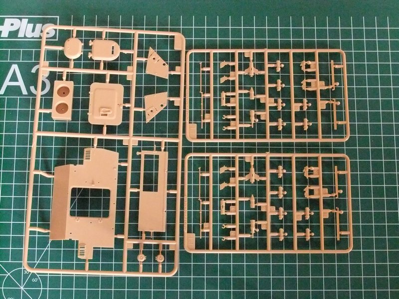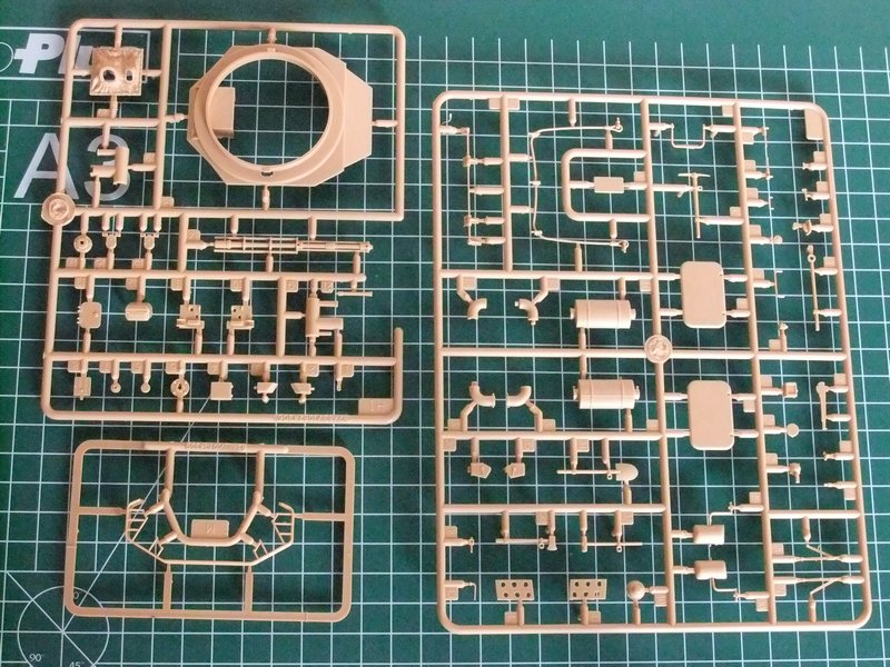 Alle Bauteile sind fein und sauber abgespritzt. Die Strukturen der Oberflächen auf der Fahrzeugwanne sind vom feinsten und Ober-und Unterwanne passen perfekt aufeinander. Der Rest des Zusammenbaus ist eine reine Fleißaufgabe. Es geht darum, die vielen Kleinteile an den richtigen stellen zu platzieren.Sämtliche Luken und Türen sind auch innenseitig detailliert und lassen sich in geöffneter Position darstellen. Die Allerdings gibt es nicht einmal eine angedeutete Inneneinrichtung.