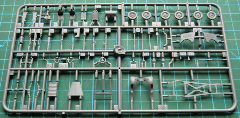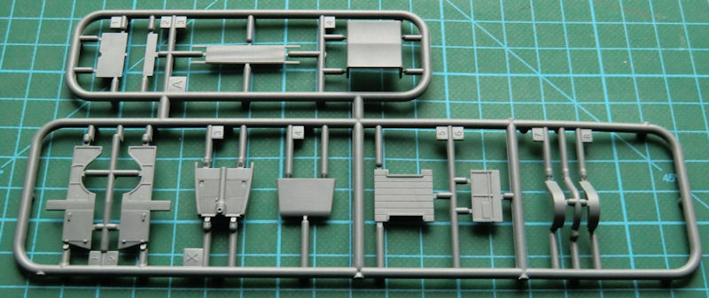 Im stabilen attraktiven Stülpkarton befinden sich gut verpackt eine Bauanleitung, ein Fotofilm, ein kleiner Decalbogen, sowie zwei grau Spritzlinge mit 63 Bauteilen. Die Abspritzung ist in Ordnung und die Details sind sehr gut wiedergegeben.