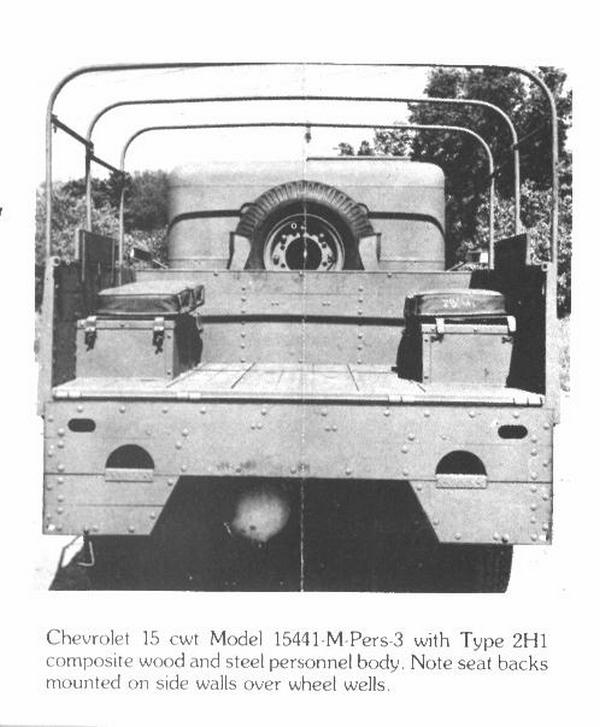 Vorbild: Der Pritschen-Aufbau 2H1 (general service body) war dafür ausgelegt, eine 10 Mann Infanterie-Besatzung mit ihren Waffen zu transportieren. Für weitere Waffen und Ausrüstung war jedoch kein Platz. Auf jedem Radkasten saßen max. 3 Mann (daher die Erhöhung der Seitenwand im mittleren Bereich) und in jeder Ecke der Pritsche je ein weiterer Soldat.