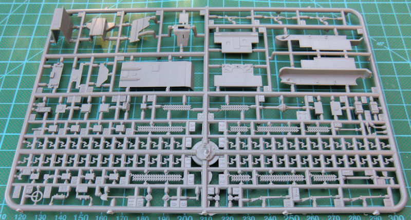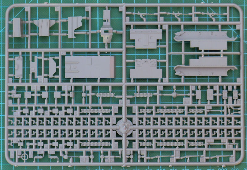 Es gibt feine in Short-Run-Produktion hergestellte Bauteile. Sie sitzen an recht stabilen Angüssen. Ein Großteil der Bauteile geht für die Ketten drauf. Hier gibt es neben einzelnen Gliedern auch Segmente. Für deren Montage liefert IBG eine Schablone.