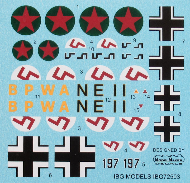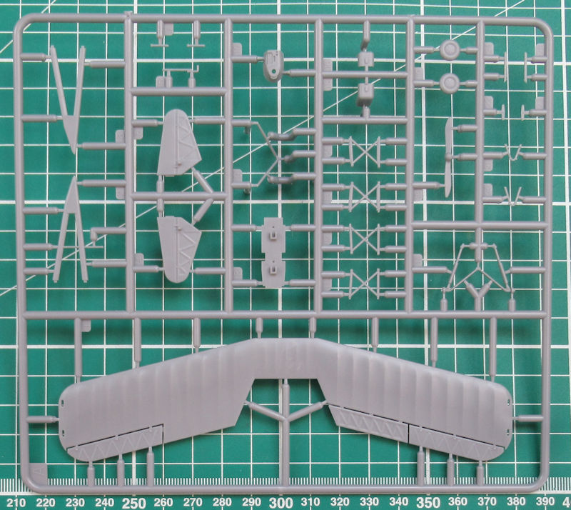 Der etwas zu große aber sehr praktische Stülpkarton enthält gut verpackt zwei hellgraue Spritzlinge mit 32 Teilen, ein Klarsichtrahmen mit zwei Teilen, ein Decalbogen(der zweite bei mir war wohl ein Versehen) und die übersichtliche Bauanleitung. Die Bauteile sind sehr gut detailliert. Allerdings hat man bei IBG die ganze Tragfläche als stoffbespannt dargestellt. Das sehen manche Modellbauer anders. Anhand von Vorbildfotos tendiere ich zur IBG-Variante. Allerdings kann man nicht ausschließen, dass es auch Tragflächen mit beplankter Tragflächenprofilnase gab...