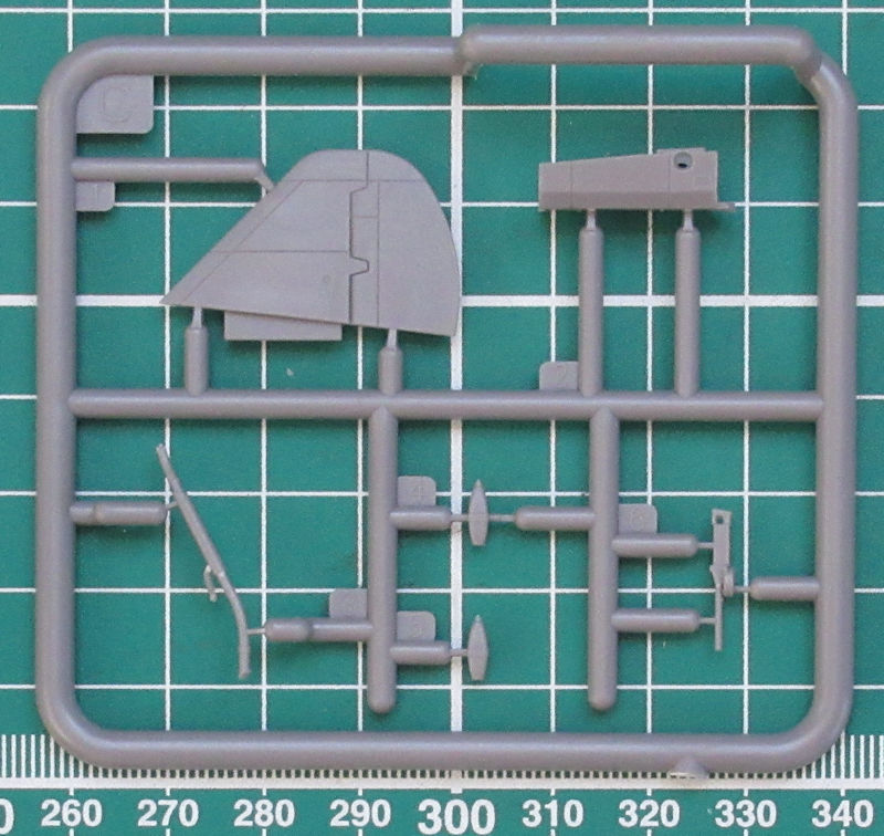 Die Bauteile sind voll auf der Höhe der Zeit. Es gibt schöne feine versenkte Strukturen. Einige Kleinteile sind als Fotoätzteil nachgebildet. Allerdings hätte man hier auch die Sitzgurte mit unterbringen können… Der Bau beginnt mit dem Cockpit. Hier gibt es eine sehr detaillierte Inneneinrichtung und die inneren Seitenwände sind schön strukturiert. Man vermisst halt wirklich nur die passenden Sitzgurte. Für das Instrumentenbrett gibt es ein passendes Decal.