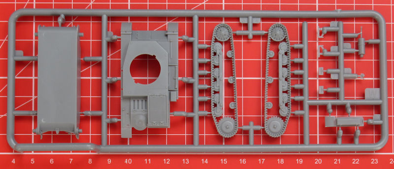 Der Bau sollte recht einfach von der Hand gehen. Das Fahrwerk ist etwas vereinfacht aber sehr realistisch. Selbst einige Kleinteile sind sehr fein. So ist das Werkzeug einzeln gespritzt. Die Luke für den Kommandanten bleibt zu.