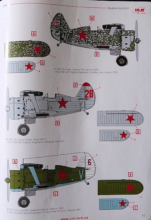 Vorbild: Die I-153, wegen Ihres auffälligen Knicks in den Tragflächen auch "Chaika" (Möwe) genannt, war eine Weiterentwicklung der ebenfalls von Polikarpow entwickelten I-15. Nach den Erfahrungen aus dem spanischen Bürgerkrieg erhielt sie ein stärkeres Triebwerk sowie ein einziehbares Fahrwerk und begab sich im Herbst 1938 erstmals in die Lüfte. Ihre Feuertaufe erhielt sie schon Anfang des Jahres 1939, als sie es im Chalchin-Gol Grenzkonflikt erfolgreich mit japanischen Kampfflugzeugen aufnahm. Auch im Winterkrieg gegen Finnland 1939/40 durfte sie reichlich Pulverdampf riechen sowie als Waffenhilfe in chinesischen Diensten erneut gegen die japanische Luftwaffe antreten. Während der ersten Tage des Krieges gegen die UdSSR konnte die deutsche Luftwaffe eine große Anzahl dieses Musters zerstören, die meisten davon am Boden. Inzwischen veraltet, zog man sie zu Gunsten modernerer Typen immer mehr von den Frontverbänden zurück und nutzte sie bis 1943 allenfalls noch als Schlachtflieger oder Verbindungsflugzeug. Damit endete nach 3437 gebauten Exemplaren ihre Karriere bei der Roten Armee als letztem Kampfflugzeug in Doppeldecker-Ausführung. Doch auch heute noch kann man dank einiger Nachbauten dieses kleine Kraftpaket auf diversen Flugschauen bewundern.