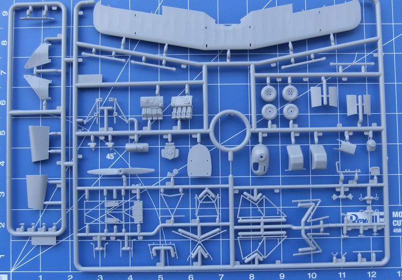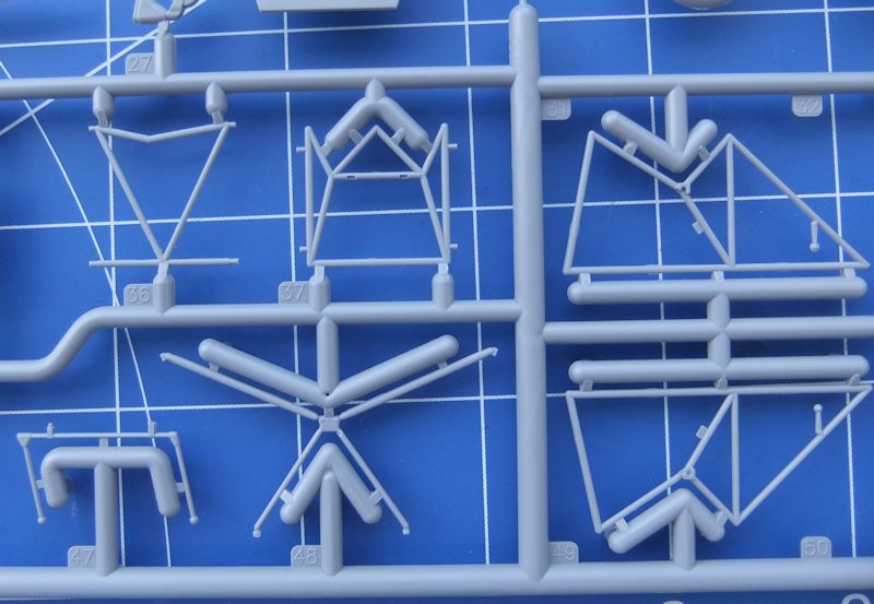 Bausatz: Der Bausatz ist eine absolute Neuheit. Auf alle Fälle schließt ICM mit diesem Bausatz eine große Lücke im Bereich Luftfahrt der 1930er Jahre. Die 92 Bauteile sind alle sauber und ohne nennenswerte Mängel gefertigt. Es gibt einige Auswerferstellen, welche aber zu verschmerzen sind. Besonders gelungen ist die Wiedergabe der Stoffbespannung, aus welcher fast die gesamte Zelle besteht. So einfach war damals der Aufbau solch eines Flugzeuges. Ein Rohrgerüst für den Rumpf, Spanten für Flügel und Leitwerk und alles wurde mit einer speziellen Leinwand überzogen.