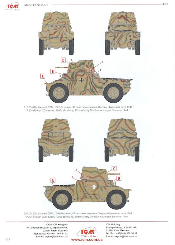 Vorbild: Der Panhard 178 oder Pan-Pan war ein allradgetriebener Radpanzer, der vor dem Zweiten Weltkrieg für die französische Armee entworfen wurde. Er hatte vier Mann Besatzung und war mit einer 25-mm-Kanone und einem koaxial montierten 7,5-mm-MG ausgestattet. Nach dem Waffenstillstand im Jahr 1940 wurden einige Fahrzeuge von der Wehrmacht als Panzerspähwagen P204 (f) übernommen.
