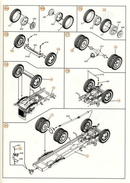 Der aus 175 Einzelteilen, die sauber in hellbraun bzw. klaren Plastik sowie Gummi-ähnlichem Material gefertigt sind, bestehende Bausatz dürfte anhand der wie immer gut gestalteten 12-seitigen Bauanleitung (mit Farbangaben für Model Master Farben), keine größeren Schwierigkeiten beim Zusammenbau dem Anfänger, wie auch dem fortgeschrittenen Modellbauer bereiten!