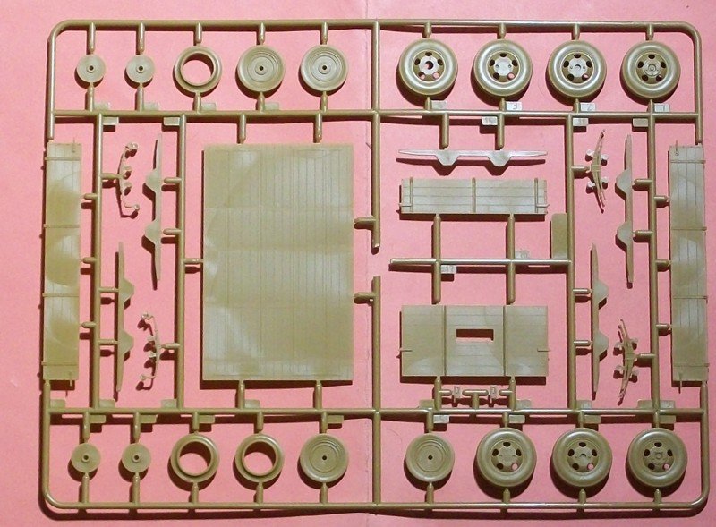 Der vorliegende Bausatz besteht aus teilweise filigranen Teilen und gibt das Ford Maultier sehr detailliert wieder. Auch ein Modell des Motors ist vorhanden. Daneben ist auch ein klarer Gießast für die Scheiben und Scheinwerfer vorhanden. Figuren liegen dem Bausatz nicht bei.