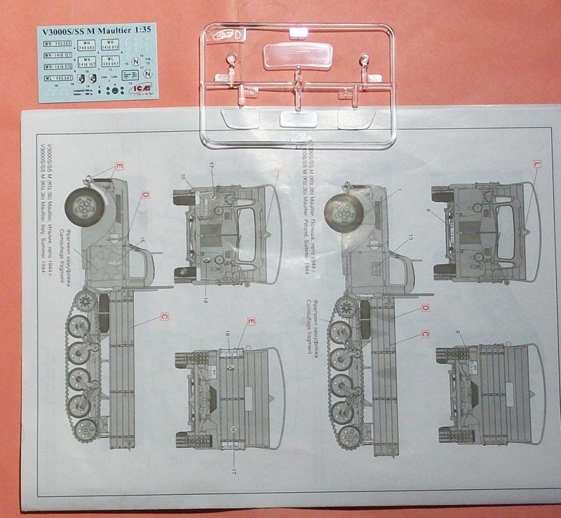 Als Grundbausatz liegt der komplette Bausatz des Ford 3000 LKW`s vor ergänzt um einen neuen Gießast mit den Halbkettenlaufwerk mit Einzelkettenglieder und Ketten Streifen bei. Auch ein neuer Abziehbildersatz ist dabei.