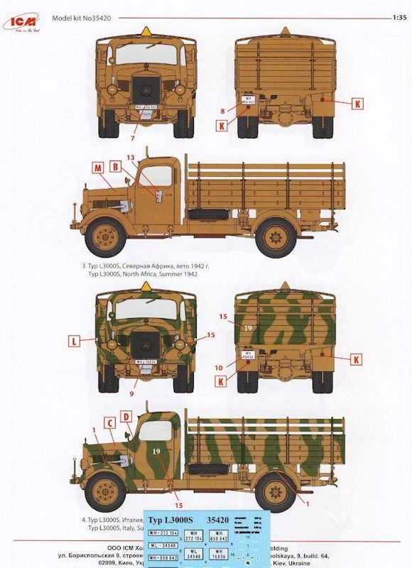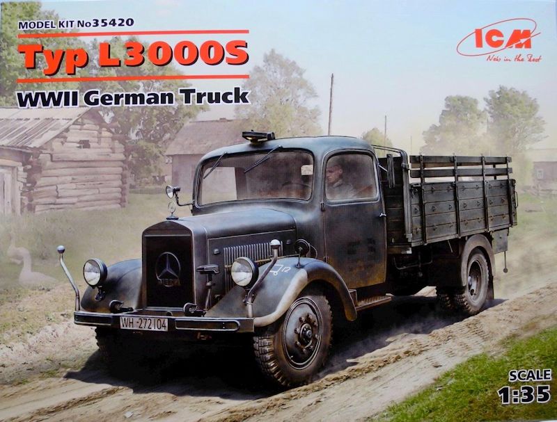 Bausatz: Nach dem Mercedes-Benz LG3000 LKW war es nur zu hoffen, das ICM endlich einen Mercedes L3000 als Modell heraus bringt. Seit kurzem ist nun dieser LKW Typ im hiesigen Modellbauhandel erhältlich. Italeri hatte zwar Mitte der 1990er Jahre einen Bausatz des Typs L3000 herausgebracht, der sich aber leider sehr stark an seinem guten alten Opel Blitz Kit orientierte. So wurden damals fast alle Bauteile vom Opel Blitz übernommen, lediglich die vordere Fahrerkabine und Details an den hinteren Blattfedern wurden geändert, die Felgen, der Rahmen und Motor wurden weiterhin vom Opel übernommen.