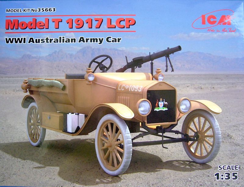 Vorbild: Das amerikanische Fahrzeug Ford T oder auch als Tin Lizzie bekannt, wurde bereits ab 1908 hergestellt und war mit der Einführung der Fließbandproduktion ein Meilenstein der Automobilindustrie. Unter der Bezeichnung LCP (Light Patrol Car) wurde dieses Fahrzeug in einer Art Cabriolet von der australischen Armee im 1. Weltkrieg eingesetzt. Das Fahrzeug bot Platz für drei Insassen und war mit einem Lewis MG bewaffnet. Siehe für weitere Informationen und Bilder