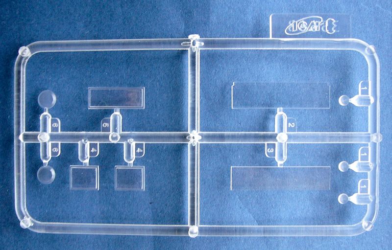Am dritten transparenten Spritzling wurden die Scheiben und Scheinwerfer abgeformt.