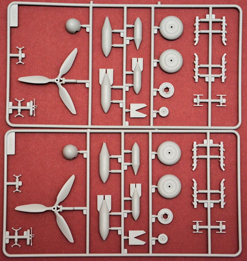 Die Nachbildung der Junkers Jumo 211 Motoren ist sehr gut gelungen, Klappen können offen oder geschlossen dargestellt werden. Die Propellerblätter müssen nachgearbeitet werden, da teilweise Gussgrate vorhanden sind.