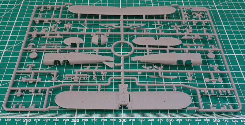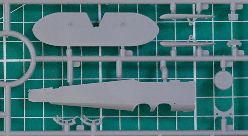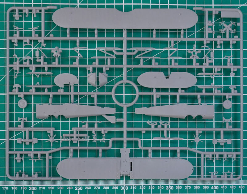 Sehr gelungen ist das Hauptfahrwerk. Als Alternativteile gibt es noch ein Skifahrwerk. Auf dem kleineren Spritzling befinden sich alle Teile für die Bewaffnung. So gibt es ein exzellentes Abwehr-MG. Das bietet sicherlich noch bisschen Potential für Verfeinerungen. Den kleinen M-11-Sternmotor gibt es mit oder ohne Verkleidung. Die Luftschraube besteht aus einem Teil. Für die obligatorische Verspannung gibt es einen aufschlussreichen Plan in der Bauanleitung.