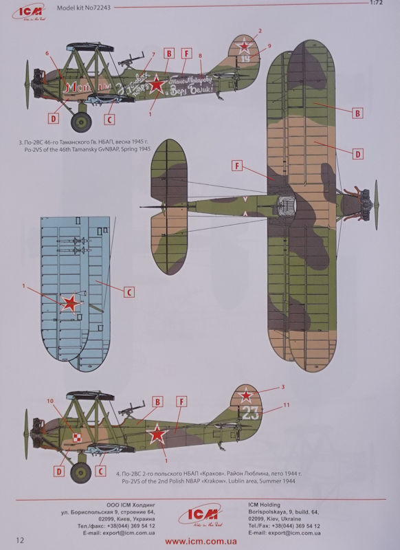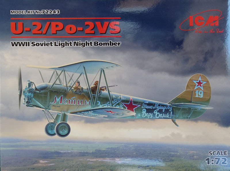 Bausatz: Dieser Kit von ICM war eine Überraschung. Es ist wirklich eine echte Formneuheit! 2012 gab es schon mal eine neue Po-2 aus der Ukraine vom gleichem Hersteller in 1/72… Schon bei der Bezeichnung hat kann man die militärische Variante herauslesen. So befinden sich in dem praktischen stabilen Karton zwei hellgraue Spritzlinge mit 104 Teilen, ein klarer Spritzling mit sechs Teilen, ein Decalbogen und die mehrfarbige Bau- und Bemalungsanleitung.