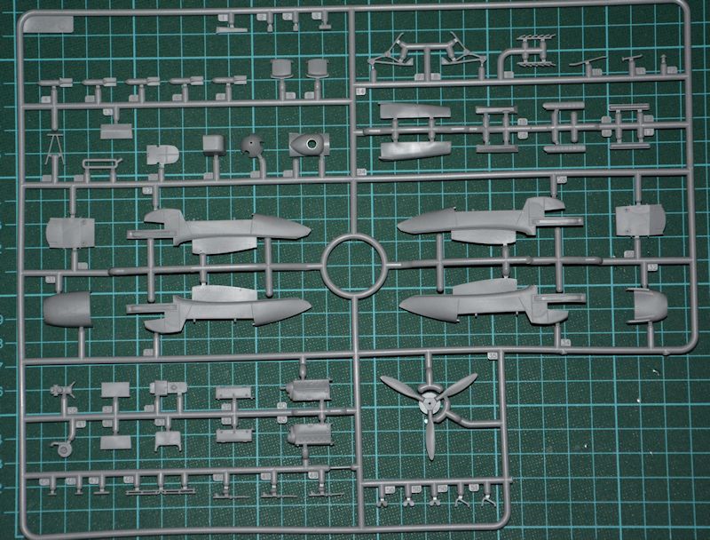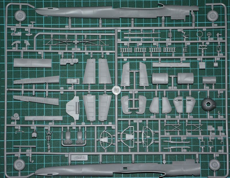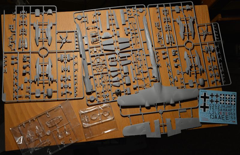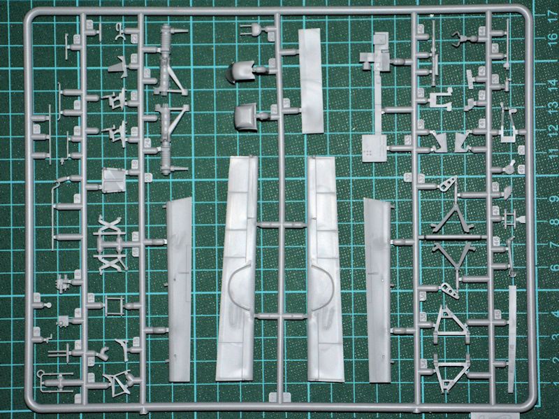 Im stabilen Karton befinden sich vier graue Rahmen mit 207 Teilen, zwei mit 16 Klarsichtteilen, der Abziehbilderbogen und die Bauanleitung. Diese ist verständlich und übersichtlich aufgebaut. Die sauber abgeformten Teile haben feine versenkte Strukturen und schöne Oberflächendetails.