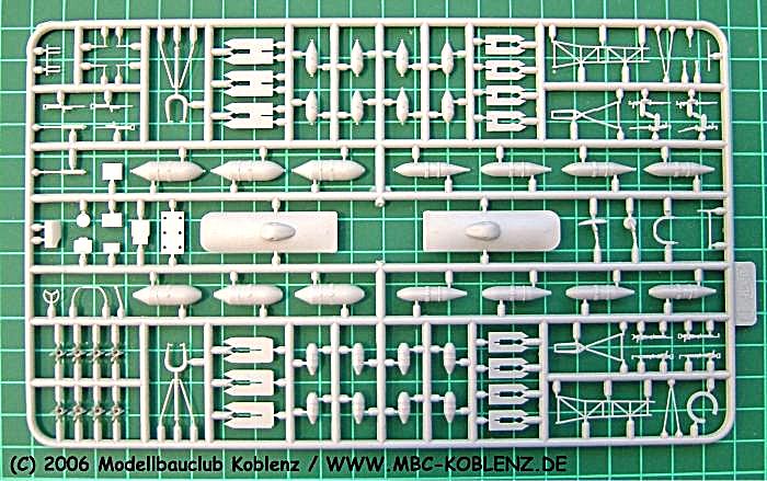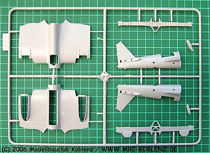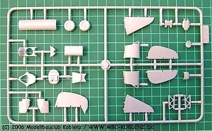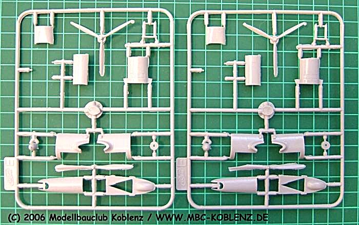Der stabile Karton enthält 7 Spritzlinge mit 164 Einzel- und 15 Klarteilen. Einige Teile werden nicht benötigt oder sind optional zu bauen. So z.B. verschiedene Abwurfwaffen oder Skier anstelle des normalen Fahrwerks. Die Oberflächen der Einzelteile sind fein strukturiert, jedoch ganz ohne Nacharbeiten geht es nicht. Die Montageanleitung ist übersichtlich aufgebaut.