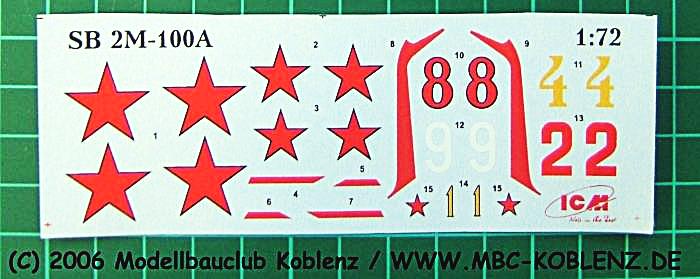 Bausatz: Nach dem Ur-Alt-Modell von Frog und den Kleinserien-Bausatz von MPM nimmt sich ICM (in Deutschland über FALLER) als dritte Firma der bekannten SB-2 an. Es wurde auch höchste Zeit, denn dieser Schnell-Bomber war zwischen den 30'er und 40'er Jahren das Rückgrad der sowjetischen Bomberverbände. Auch im spanischen Bürgerkrieg kamen SB-2's auf beiden Seiten zum Einsatz. Aber auch auf anderen Kriegsschauplätzen waren sie präsent. Nur ganz wenige Maschinen sind heute in Museen erhalten geblieben.