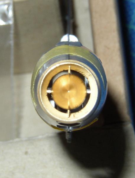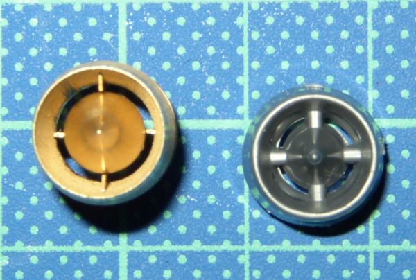 Lufteinläufe im Vergleich (bitte beachten, dass das Messingteil durch die Kegelteile höher und damit dem Objektiv näher ist)