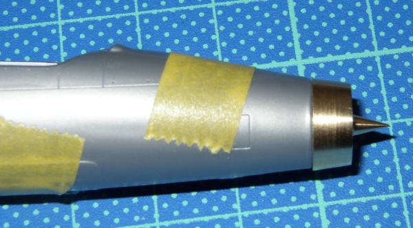 Der Lufteinlauf wurde jetzt aus drei Metallteilen hergestellt. Die vier Leitbleche wurden soweit es ging verkleinert und an die richtige Position gesetzt. Der Kegel erhielt die im Original vorhandene Form und hat eine Spitze. Der Ring des Lufteinlaufes ist ebenso messerscharf. Eine Montageanleitung liegt bei. Die Zurüsteile ersetzen das Bausatzteil und es muss nur der Passzapfen mittels Skalpell entfernt werden. Übrigens werden der Kegel und das Leitblechteil von vorn eingesetzt (erleichtert das Lackieren).