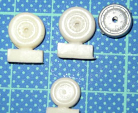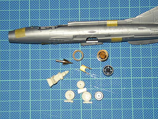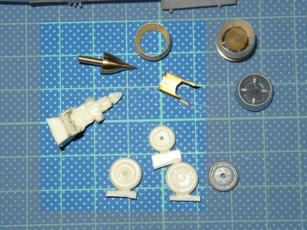 Die Räder werden durch Resinteile ersetzt, da die Bausatzteile mit dem Original leider nichts zu tun haben. Als weitere Ergänzung gibt es noch den Schleudersitz ebenso als Resinteil.