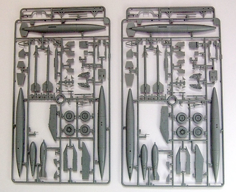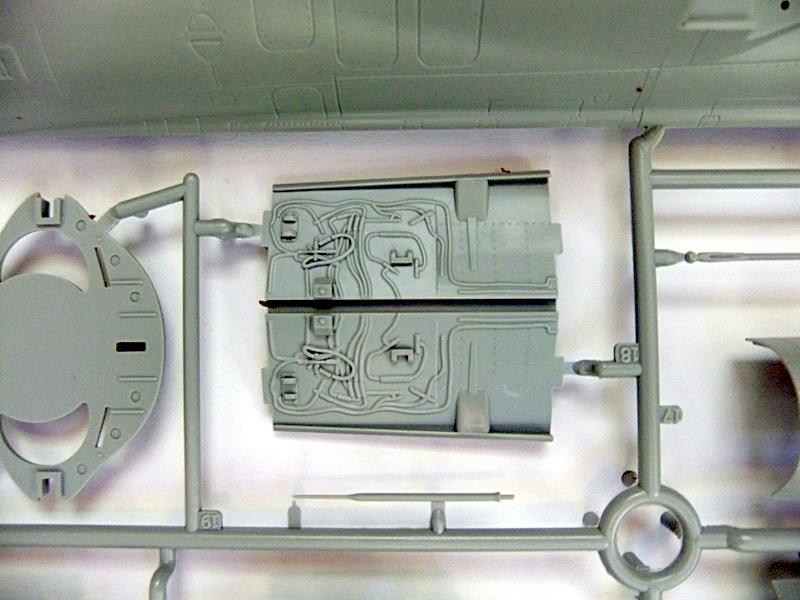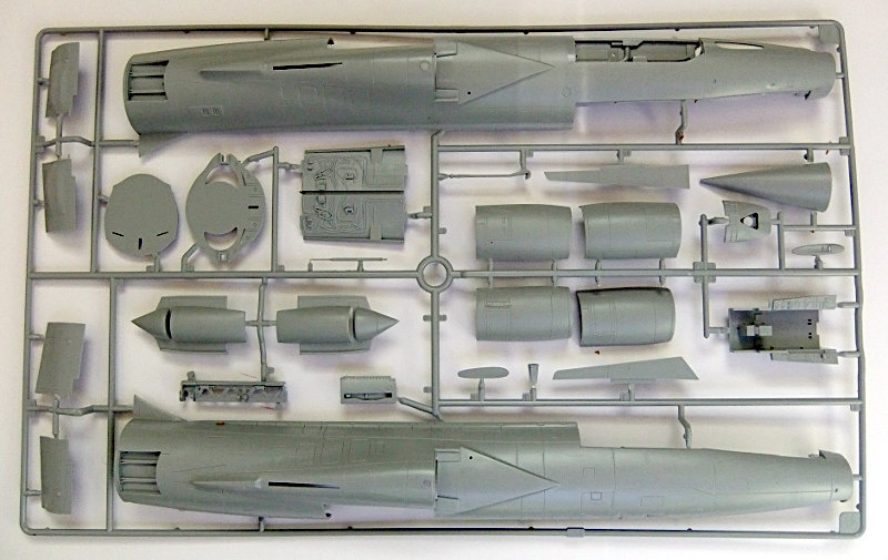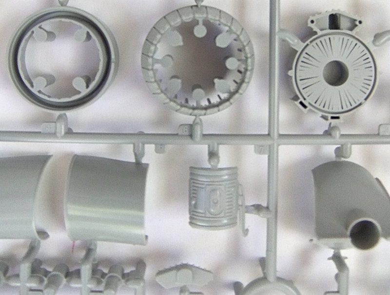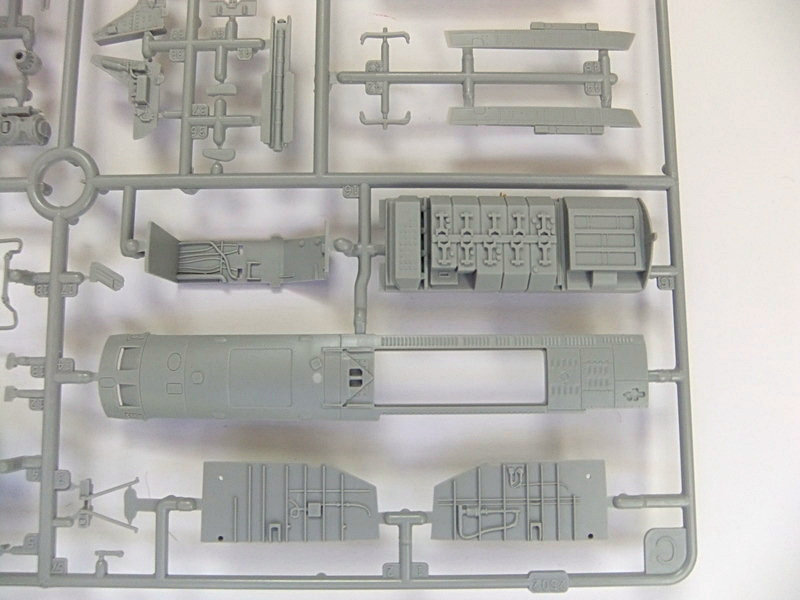 Bei der Betrachtung der Bauteile fallen einem sofort die markanten Gravuren ins Auge. Besonders an den beiden Rumpfhälften wirken sie etwas überdimensioniert. Die Bauteile sind sauber und exakt gefertigt und zeigen einen hohen Standard an Details.